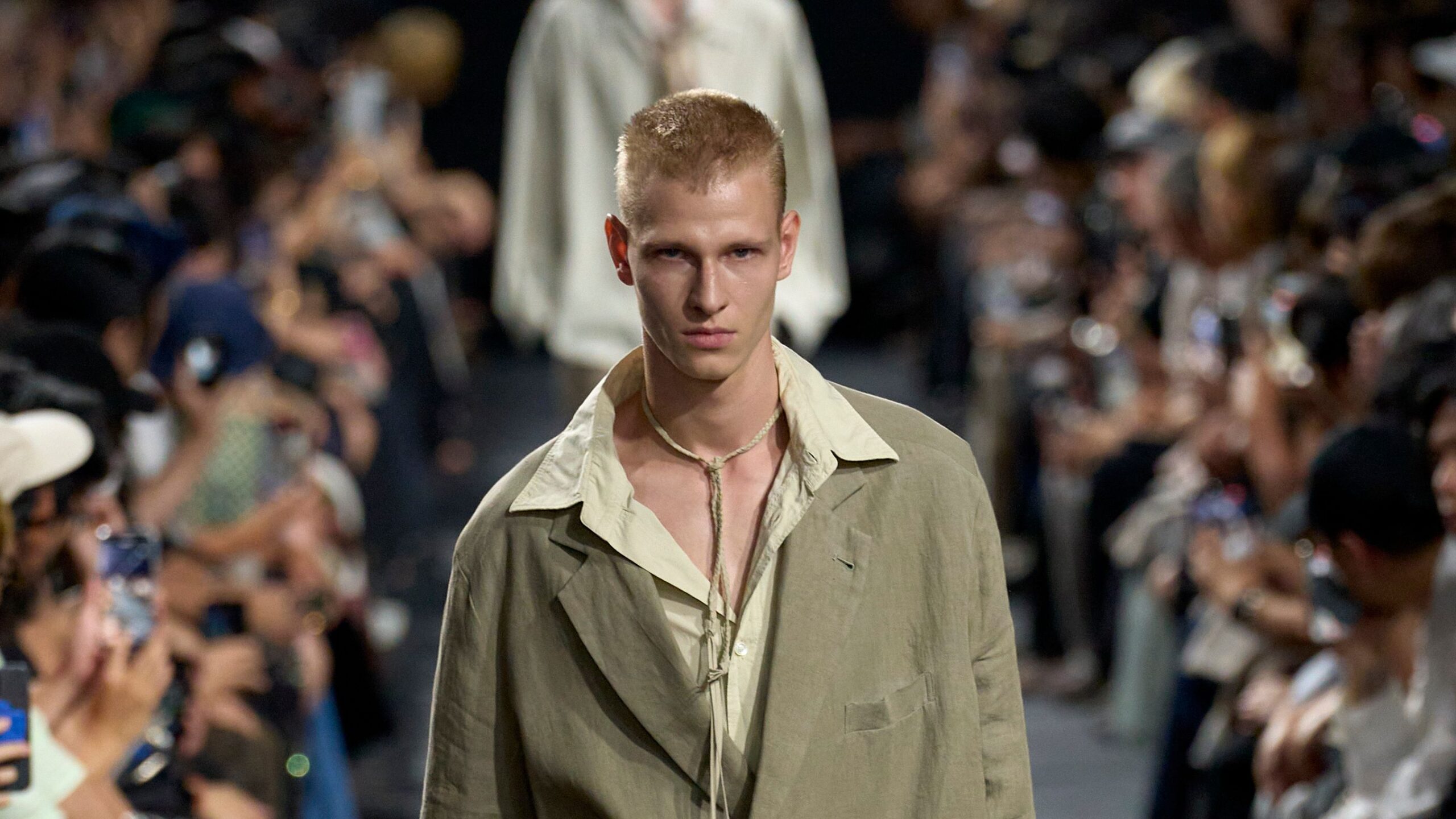 If you want a broad yet accurate window into what a lot of Japanese menswear looks like right now, this debut show from Ancellm provides it. The brand’s first runway show in Tokyo marks five years since the brand’s inception; it unfolded in front of an audience just shy of 1,000 people, in the vast and glassy Triangle Plaza of the Shinjuku Sumitomo Building.
