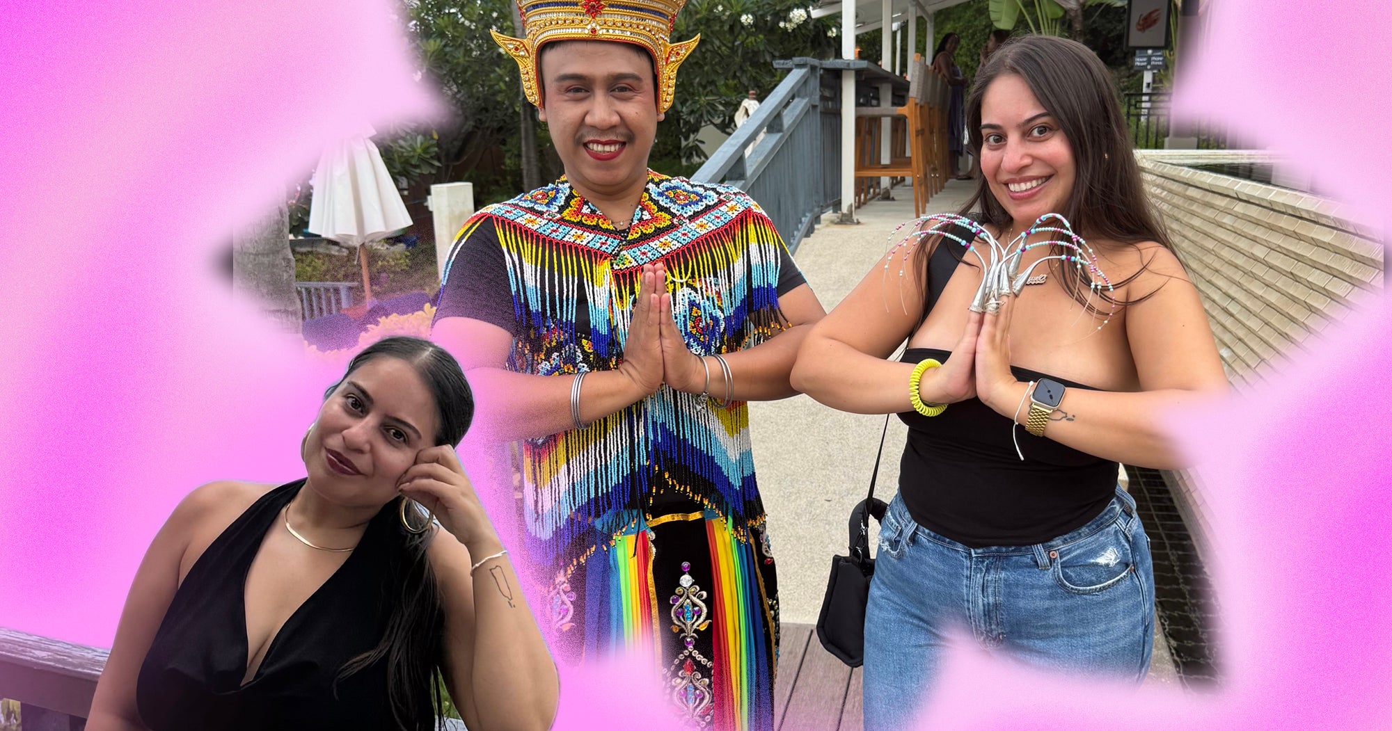 On the second day, once my friend finally had her suitcase of essentials, we jumped back into our itinerary, which was still patiently waiting for us. It didn’t matter which day we did what, just that we were doing it. Over breakfast at Ocean Kiss, the resort’s breezy beachfront buffet restaurant, we had fresh watermelon juice, Thai iced coffee, tropical fruit, noodles, pastries, and made-to-order omelets. Afterwards, we wandered the resort for some light cardio, passing koi ponds, checking out the tree house restaurant, Tree Tops, we’d booked for later in the week, and stumbling into a rooftop boxing gym with the most stunning island views. Back at our villa, we cooled off in our private pool, enjoying deep catch-ups and hilarious photoshoots. That evening, we also watched a traditional Thai light show on the beach. The performer, barefoot and dressed in a bright red and gold costume, danced ram Thai, a slow movement that’s hundreds of years old and was originally performed in royal courts and religious ceremonies.