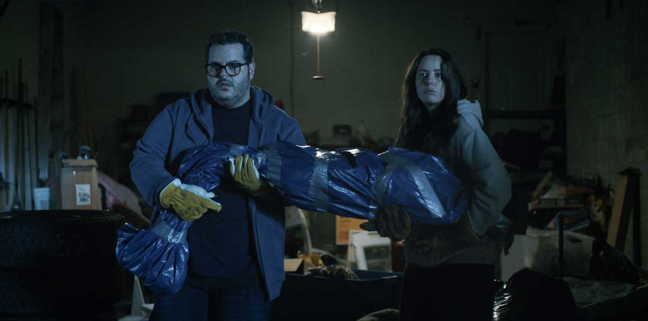The other performances are uneven, though I’m not sure how much of that is the script and how much is Winter’s direction. On one side is Gad, who fares shockingly well. Noah is a debt-addled, nerdy middle-aged who feels totally emasculated by his inability to get a project off the ground. As someone who has never been swayed by Gad’s particular brand of obnoxiously chipper humor, Noah’s depressive snark finds him in a much more comfortable register. He takes an insufferable caricature and turns it into a convincingly normal guy, even amidst all the hijinx and bloodshed. Scoledeno, however, is ill-served by a script that gives her plenty of detail but no depth. In addition to covering up a murder or six, Megan obsessively monitors her diabetic son’s glucose levels and finds herself stuck at the bad end of a multi-level marketing scheme. Scoledeno is visibly distressed, but Megan’s motivations are frustratingly indecipherible until she finally explains herself in voice-over.